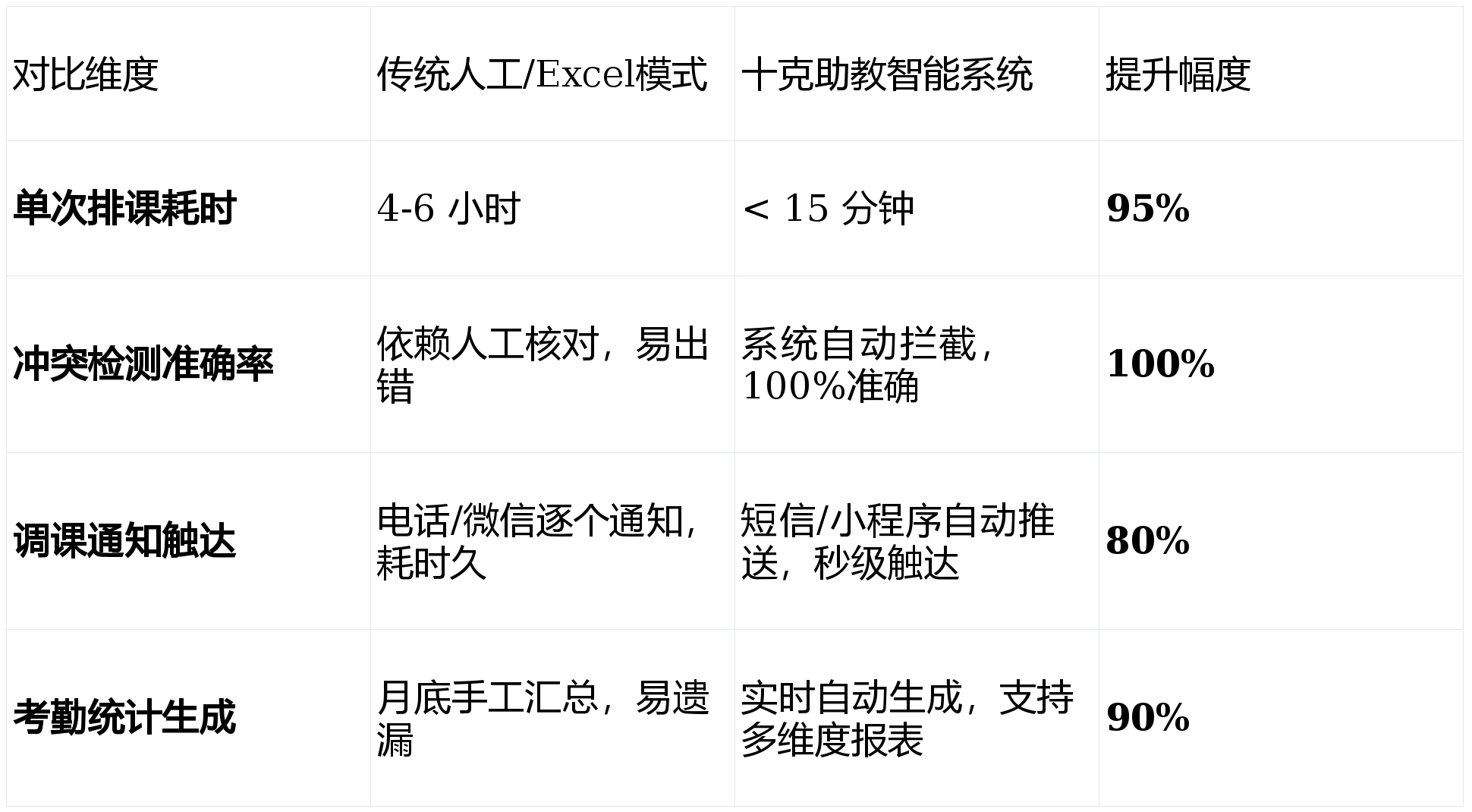 表1:传统人工排课与十克助教智能排课效率对比