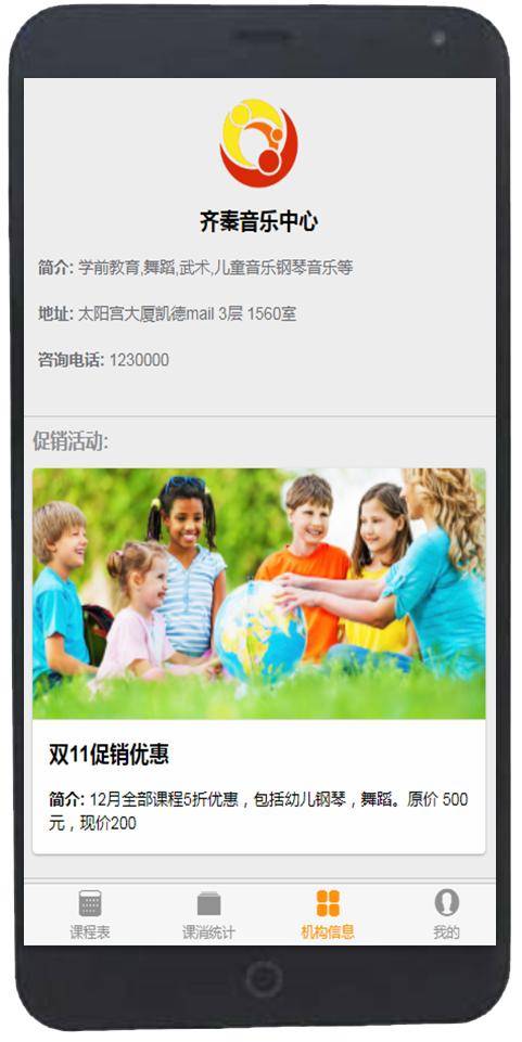 家长端、教师端、校长端:学员/家长可以随时查看学习情况,接收各种通知;教师可以线上处理事务,给学员签到、布置作业;学员可以根据自己的时间安排线上约课、请假;学员和教师都可以通过手机随时查看自己的上课统计;任课老师可以手机端给学员写课评、上传课堂图片。